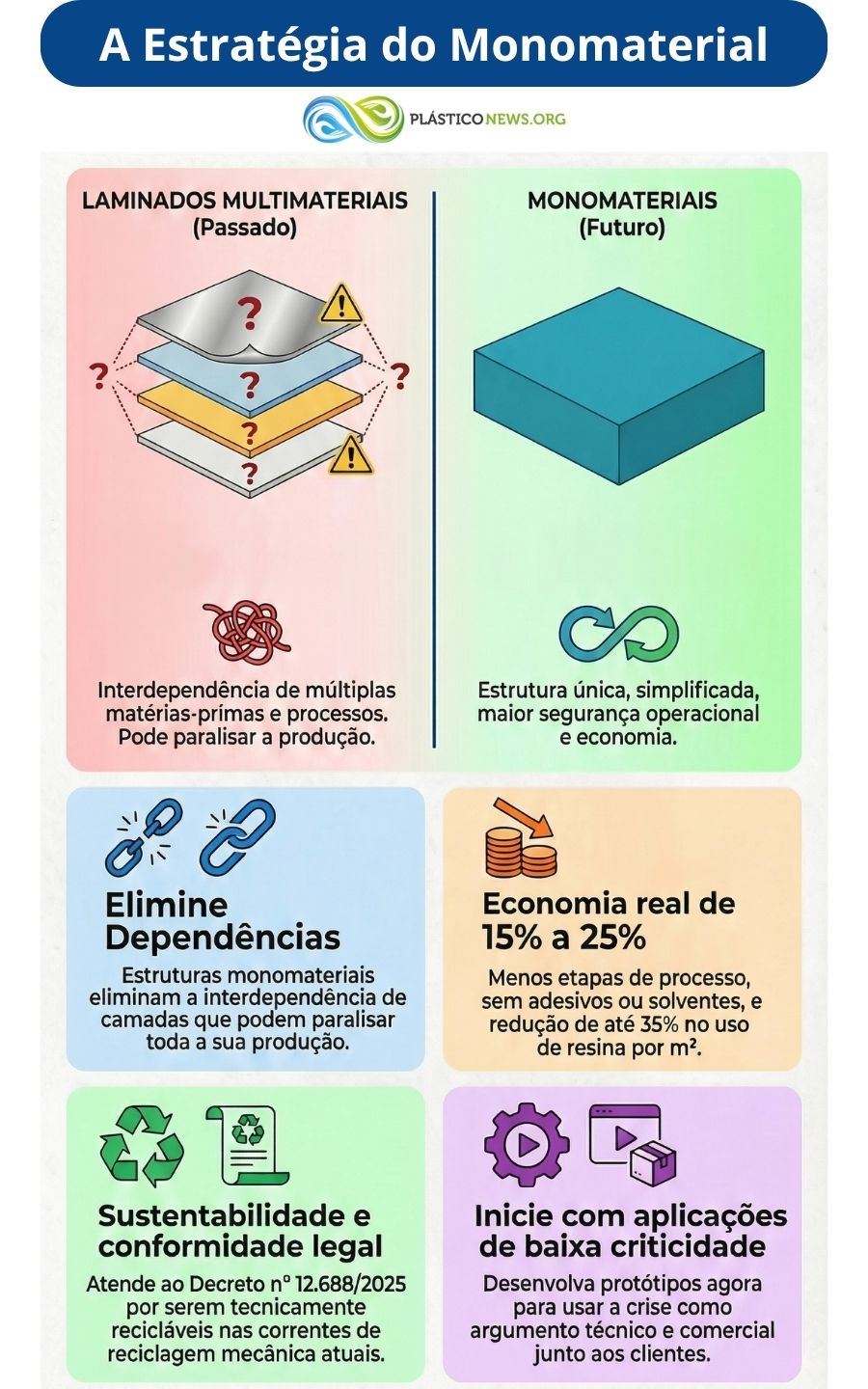 O ponto de entrada prático: escolha uma aplicação de menor criticidade no portfólio, desenvolva o protótipo monomaterial e use a crise como argumento técnico e comercial junto ao cliente.